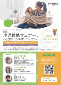 ソノヴァ・ジャパン(株)は2025年2月、小児難聴に日頃から携わっている先生方をお招きして小児のLiD/APDと軽中等度難聴をテーマにお話しいただくセミナーを開催します。