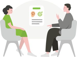 ● 「はい/いいえ」で答えられる質問を避け、「補聴器が動かなくなった時、どうしますか?」のようなオープンな質問にする